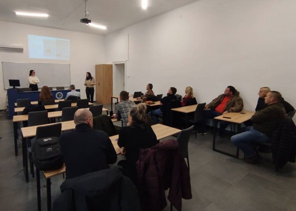Po završetku monitoring aktivnosti organizovali smo i stručnu diskusiju i predavanje na Prirodno-matematičkom fakultetu u Banjaluci, gdje je profesorica Dragana Šnjegota prezentovala analizu dobijenih rezultata sa probnih monitoringa za vuka. Uvide sa terenskog dijela rada prilikom prikupljanja podataka sa nama je podijelio Željko Sekulić. Događaju su prisustvovali predstavnici Ministarstva poljoprivrede, šumarstva i vodoprivrede, Republičkog zavoda za zaštitu kulturno-istorijskog i prirodnog nasljeđa, predavači sa PMF-a tj. institucije domaćina, predstavnici korisnika lovišta, kako iz RS-a ali i iz FBiH. Prisutni su nakon predstavljanja rezultata u otvorenoj diskusiji ukazali na prednosti, nedostatke tj. poteškoće u realizaciji protokola za praćenje.